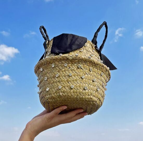 かごバッグ レディース バッグ 鞄 かばん ハンドバッグ ラインストーン きらきら バスケット カジュアル お出かけ おしゃれ 個性的 夏 リゾート バカンス ビーチ リボン カゴバッグ 女性