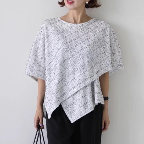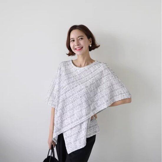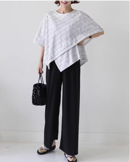 セットアップ レディース パンツセット ワイドパンツ ウエストゴム バイカラー ケープ 半袖トップス ワイドスリーブ ノーカラー コットンブレンド 上下セット きれいめ オフィス 体型カバー