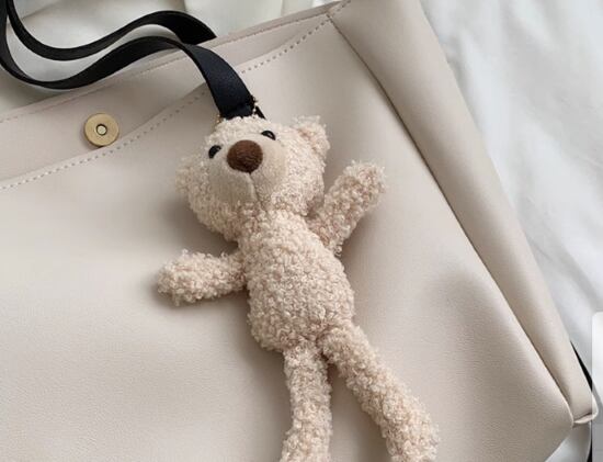 トートバッグ レディース バッグ 鞄 かばん ハンドバッグ ショルダーバッグ 肩掛けバッグ 斜め掛けバッグ スクエアバッグ チャーム付き くま アニマル シンプル 無地 カジュアル お出かけ おしゃれ