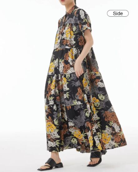 ロングワンピース レディース ワンピース ロング丈 半袖ワンピース マキシ丈ワンピース 花柄 フラワー ゆったり ルーズ カジュアル お出かけ おしゃれ プリントワンピース プルオーバー 女性 ワンピ