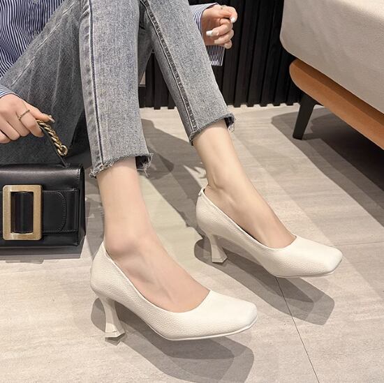 パンプス レディース 靴 シューズ スクエアトゥ ハイヒール スティレットヒール シンプル 無地 きれいめ エレガント カジュアル お出かけ おしゃれ 通勤 オフィス PU ファッション パンプス