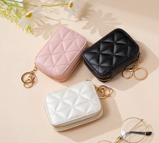 ミニポーチ レディース ポーチ ファスナーポーチ コンパクトポーチ マルチポーチ ミラー付き 鏡 メイクポーチ リップポーチ アクセサリーポーチ コスメポーチ キーリング付き ステッチ キルティング