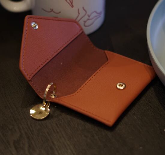 カードケース レディース カード収納 カード入れ コインケース 小銭入れ コインパース 封筒型 コイン収納 リング付き チャーム シンプル 無地 コンパクト 薄型 スリム 牛革 レザー マルチポーチ
