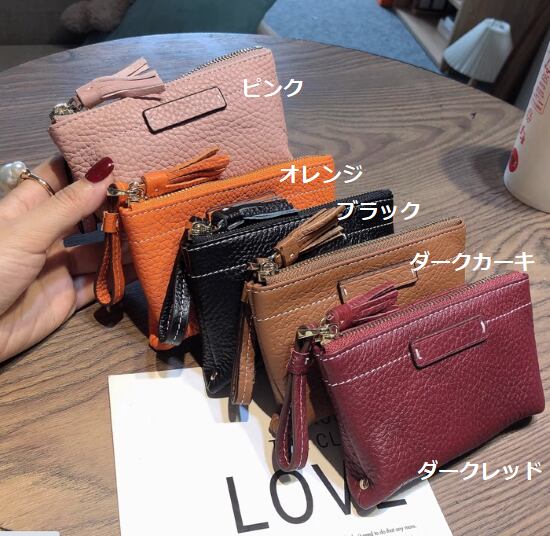 ファスナーポーチ レディース ポーチ マルチポーチ ポータブルポーチ タッセル付き キーリング付き シンプル 無地 多用途 レザーポーチ 牛革 上品 大人っぽい カード収納 コイン収納 小銭入れ 女性
