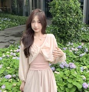 長袖ブラウス レディース シャツ 長袖 トップス ツイストデザイン 薄手 日焼け防止 UV対策 冷房対策 クロップド丈 ショート丈 Vネック ブラウス シンプル 無地 カジュアル お出かけ おしゃれ