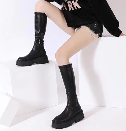 ロングブーツ レディース ブーツ 靴 シューズ 厚底ブーツ サイドジッパー ラウンドトゥ 黒 ブラック シンプル 無地 カジュアル お出かけ おしゃれ 美脚 脚長 ファッションブーツ 厚底 女性 秋冬