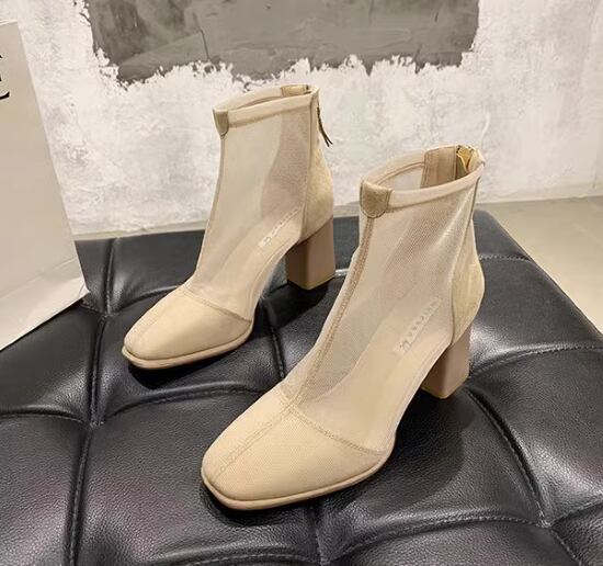 メッシュブーツ レディース ブーツ 靴 シューズ サマーブーツ ショートブーツ チャンキーヒール 太ヒール 通気性 メッシュ バックジッパー カジュアル きれいめ お出かけ おしゃれ セクシー 女性