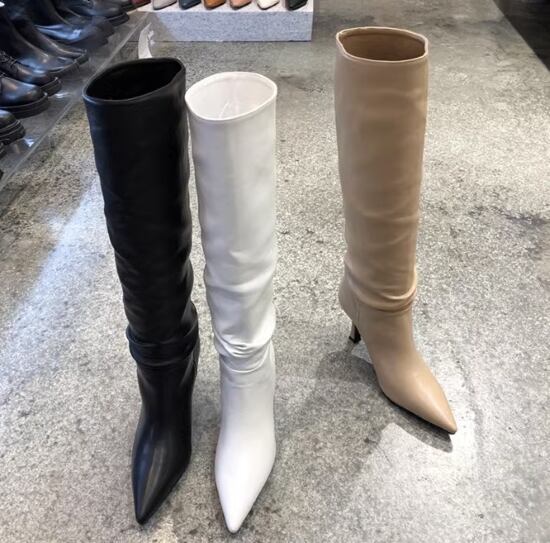 ロングブーツ レディース ブーツ 靴 シューズ ロング丈 ポインテッドトゥ シンプル 無地 美脚 脚長 スティレットヒール カジュアル お出かけ おしゃれ きれいめ エレガント ファッションブーツ