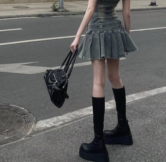 シックなブラックのロングブーツ。