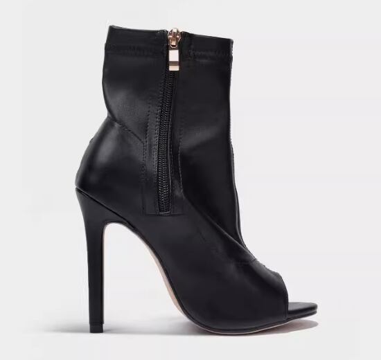 ショートブーツ レディース ブーツ 靴 シューズ オープントゥ ハイヒール スティレットヒール サイドジッパー シンプル 無地 きれいめ エレガント 美脚 脚長 カジュアル お出かけ おしゃれ 女性