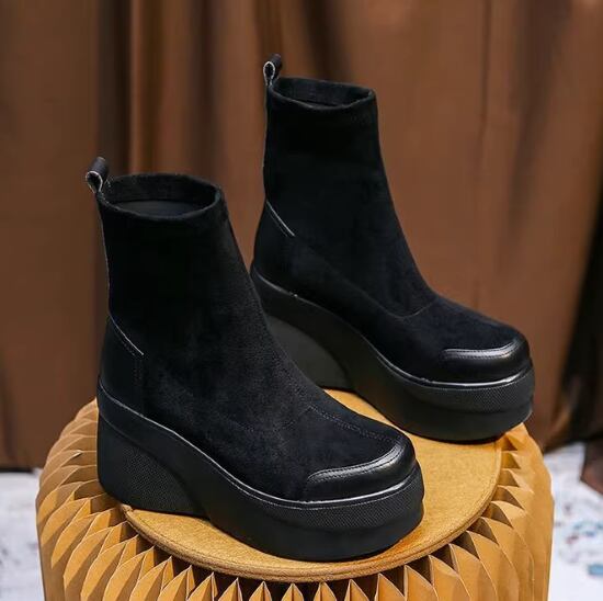 厚底ブーツ レディース ブーツ 靴 シューズ ショートブーツ スエード 美脚 脚長 シンプル 無地 カジュアル お出かけ おしゃれ ファッションブーツ 履きやすい 歩きやすい 疲れにくい 秋冬 女性