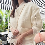 ジッパーにあしらわれたパールがエレガントな印象に。