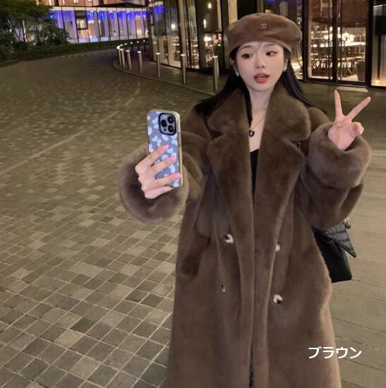 ファーコート レディース アウター ロングコート ふわふわ 暖かい 防寒 ロング丈 長袖コート フェイクファー スーツ襟 ダブルブレスト カジュアル お出かけ おしゃれ きれいめ エレガント 女性