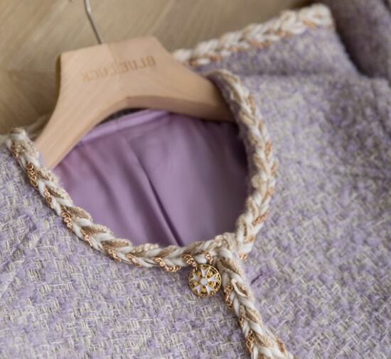 長袖ジャケット レディース アウター ジャケット 羽織 長袖 ラウンドネック 金ボタン シングルブレスト きれいめ エレガント 上品 フォーマル お呼ばれ パーティー ノーカラー パープル 紫 女性