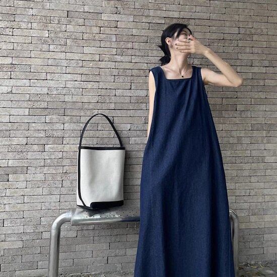 シンプルで美しい、ノースリーブAラインワンピースでカジュアルスタイルを極める。