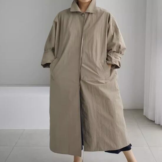 ロングコート レディース アウター 羽織 コート ロング丈 長袖 スタンドカラー シンプル 無地 ゆったり ルーズシルエット フロントボタン ポケット カジュアル お出かけ おしゃれ ファッション