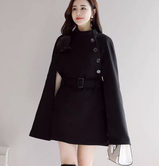 ショート丈コート レディース アウター コート 羽織 マント ケープ ポンチョ ボタン ウエストベルト Aラインコート きれいめ エレガント ファッション 無地 カジュアル お出かけ おしゃれ 秋冬
