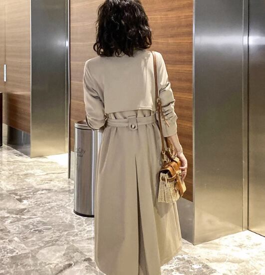 ロングコート レディース アウター 羽織 コート トレンチコート ロング丈 襟あり スーツ襟 ウエストベルト ダブルブレスト 長袖 ポケット カジュアル お出かけ おしゃれ きれいめ エレガント 女性