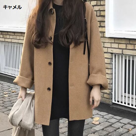 ミドル丈コート レディース アウター 羽織 コート 長袖コート シンプル 無地 秋冬 ファッション 襟あり ポロ襟 シック フロントボタン シングルブレスト カジュアル お出かけ おしゃれ きれいめ
