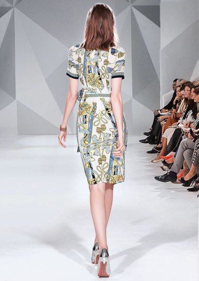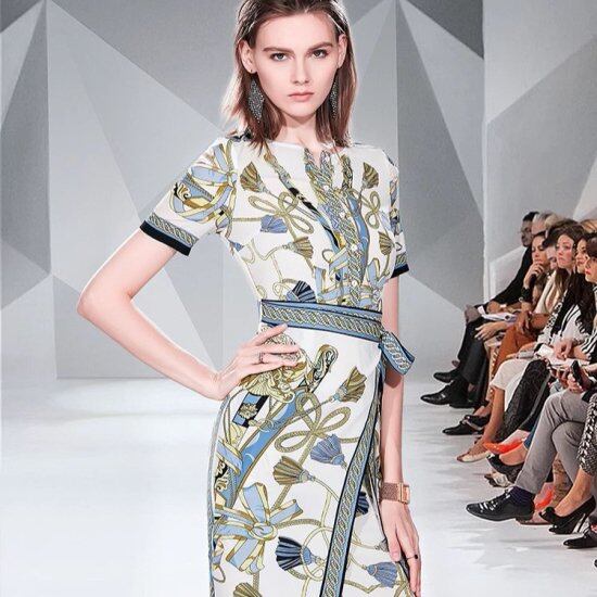 ワンピース レディース スカーフ柄 タイトワンピース 巻きスカート風 ラップスカート ひざ丈 ミディアム丈 半袖 ラウンドネック プリントワンピース レトロ クラシカル パーティー エレガント