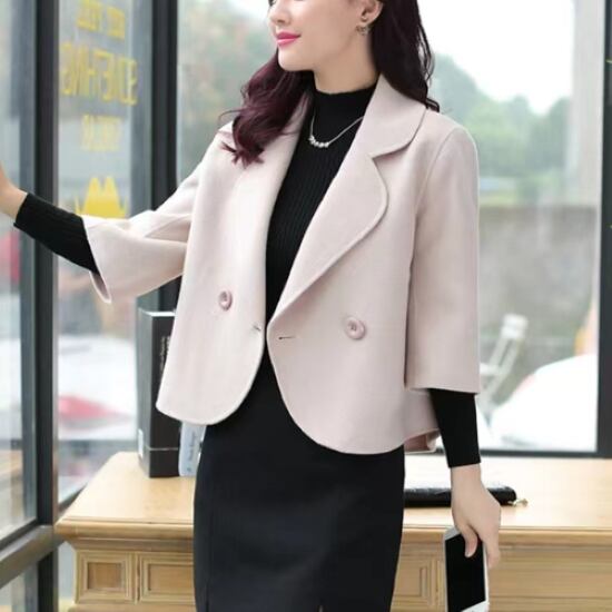 ショート丈コート レディース アウター 羽織 コート ショート丈 七分袖コート きれいめ エレガント 可愛い カジュアル お出かけ おしゃれ スーツ襟 ダブルブレスト シンプル 無地 ファッション