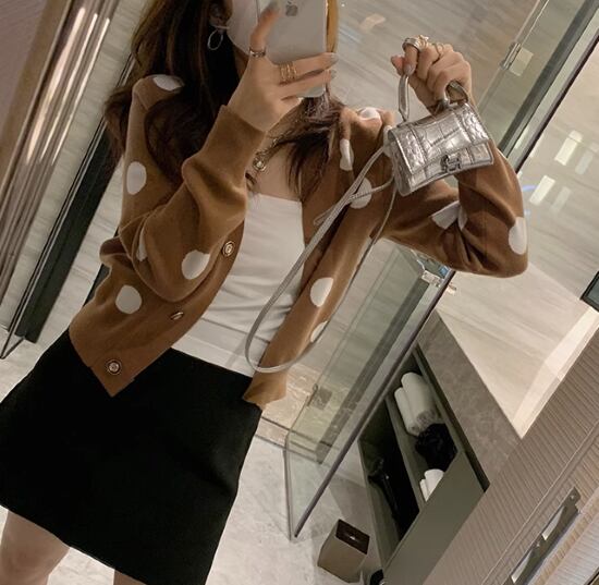 長袖カーディガン レディース 羽織 カーディガン トップス Vネック フロントボタン ドット柄 水玉 ポルカドット コントラストカラー バイカラー カジュアル お出かけ おしゃれ ファッション 可愛い