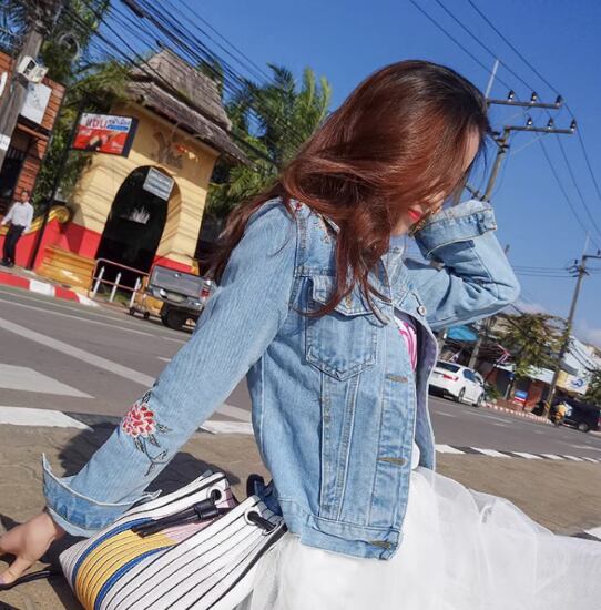 デニムジャケット レディース アウター 羽織 ジャケット Gジャン スリムフィット ショート丈 刺繍 花柄 フラワー カジュアル お出かけ おしゃれ 可愛い キュート フロントボタン 襟あり 女性