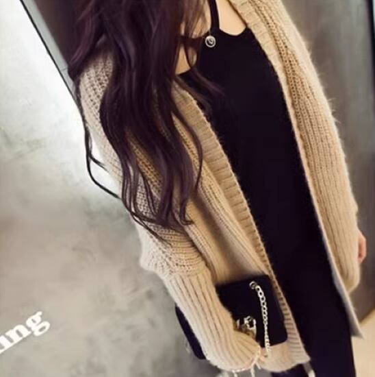 ゆったりしたドルマンスリーブのニットカーディガン。