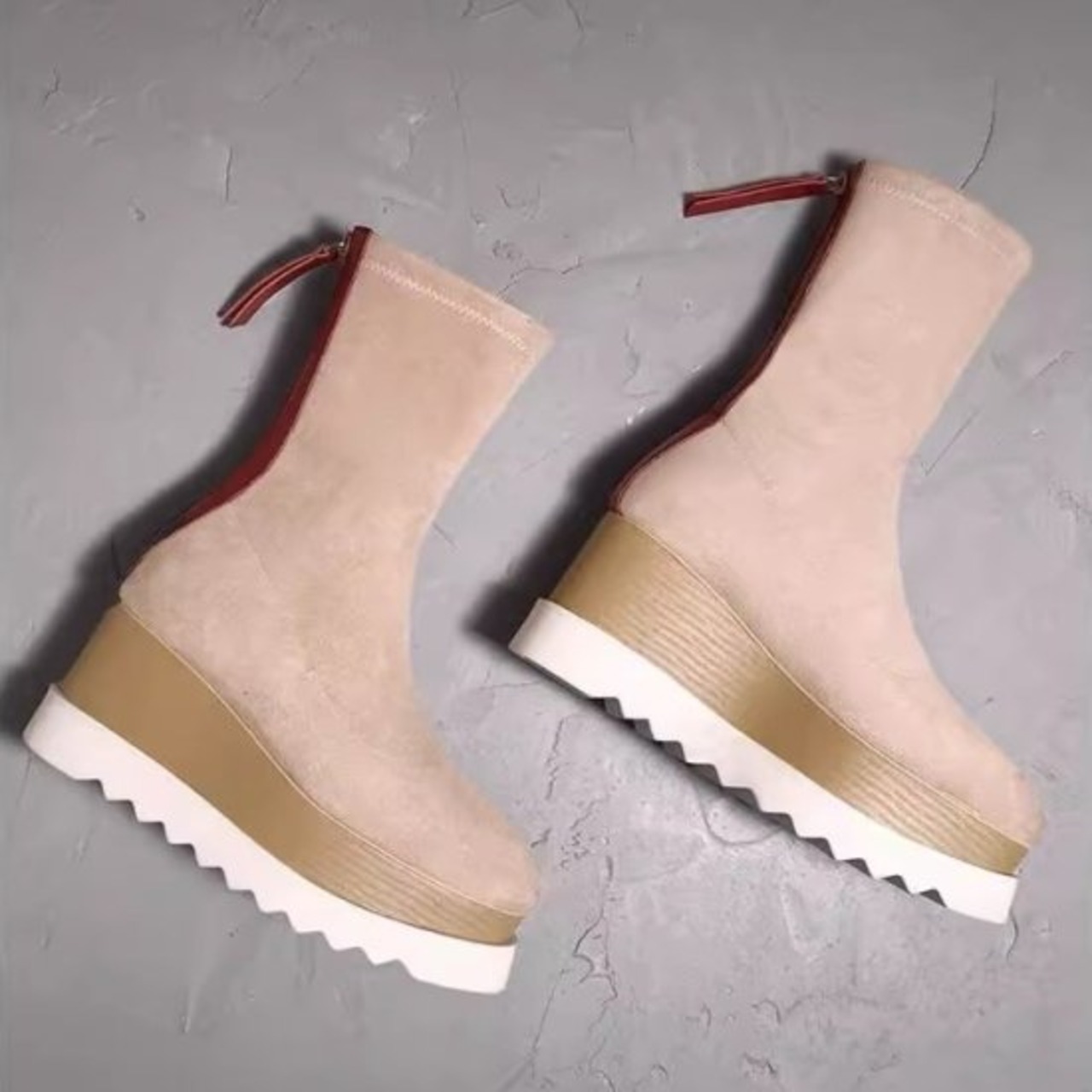 ショートブーツ レディース ウェッジソール スエード 厚底 靴 ブーツ バックファスナー バイカラー シンプル ハイヒール 8cmヒール 歩きやすい スクエアトゥ カジュアル おしゃれ