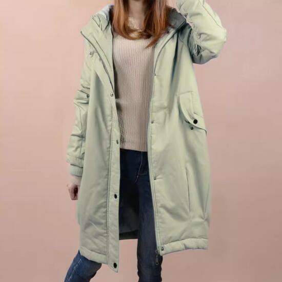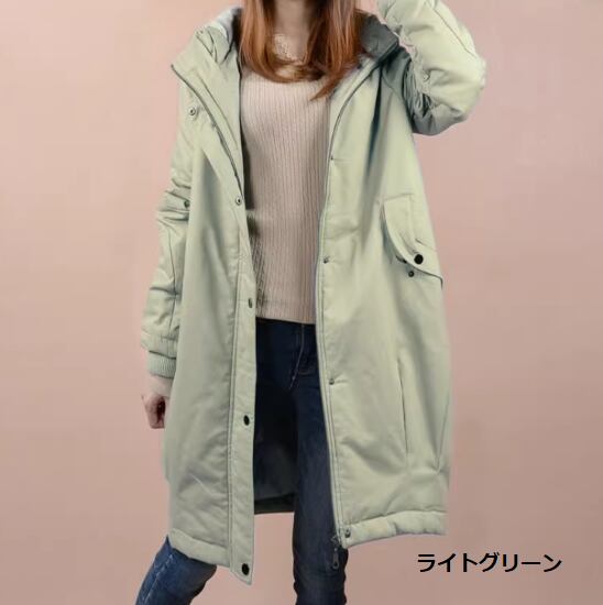 ミドル丈ジャケット レディース アウター 羽織 中綿ジャケット 長袖ジャケット フード付き シンプル 無地 フロントジッパー 防寒 防風 暖かい 秋冬 カジュアル お出かけ おしゃれ ファッション