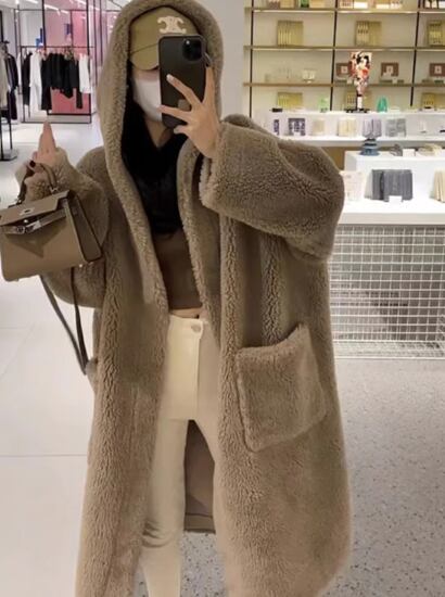 ボリュームたっぷりの華やかなフェイクファーコート。