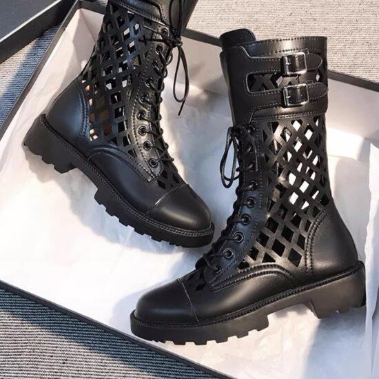 ハーフブーツ レディース メッシュブーツ レースアップ 編み上げ ラウンドトゥ 太ヒール ローヒール 4cmヒール 透け感 レース サマーブーツ ハード モード カジュアル ストリート おしゃれ