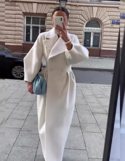 ロングコート レディース アウター 羽織 コート 長袖コート 襟あり ダブルブレスト ボタン カジュアル お出かけ おしゃれ きれいめ エレガント 白 ホワイト ボリューム袖 シンプル 無地 冬 防寒