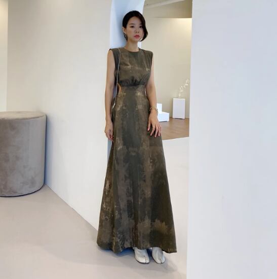 ロングワンピース レディース ワンピース ノースリーブ ハイウエスト サイドオープン ロングスカート カジュアル お出かけ おしゃれ きれいめ エレガント ファッション 春夏 大人っぽい シック 女性