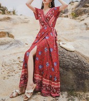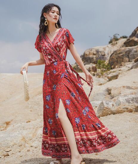 ロングワンピース レディース ワンピース 半袖ワンピース シフォンワンピース Vネック 総柄 ハイウエスト カシュクールワンピース 花柄 フラワー フローラル カジュアル お出かけ リゾート 女性
