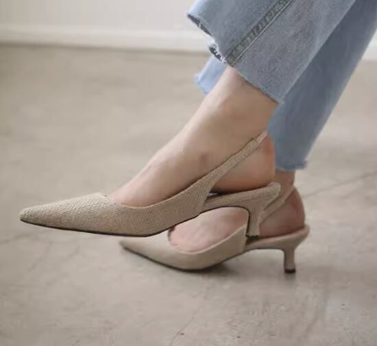 パンプス レディース 靴 シューズ ミュール スリングバックパンプス バックストラップ ヒール ポインテッドトゥ スティレットヒール きれいめ エレガント カジュアル お出かけ おしゃれ 美脚 脚長