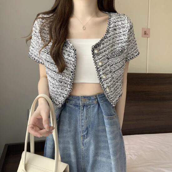 レトロ感のあるツイードが可愛い半袖ジャケット!