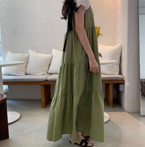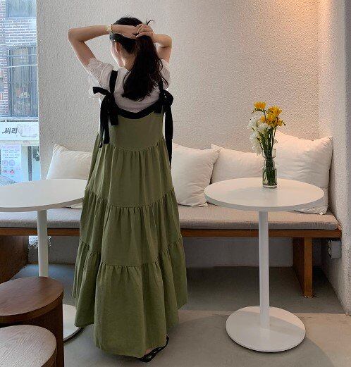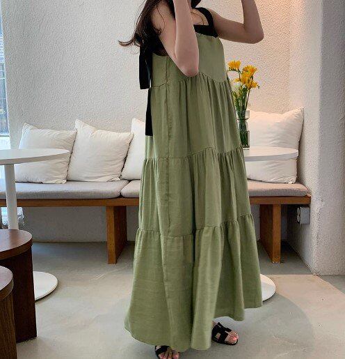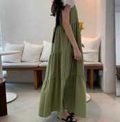 ワンピース リボン ティアード ノースリーブ キャミソール フレア フレンチ レディース ノースリーブ シルエット かわいい おでかけ カジュアル きれい フェミニン 肩ひも クラシカル 大人可愛い