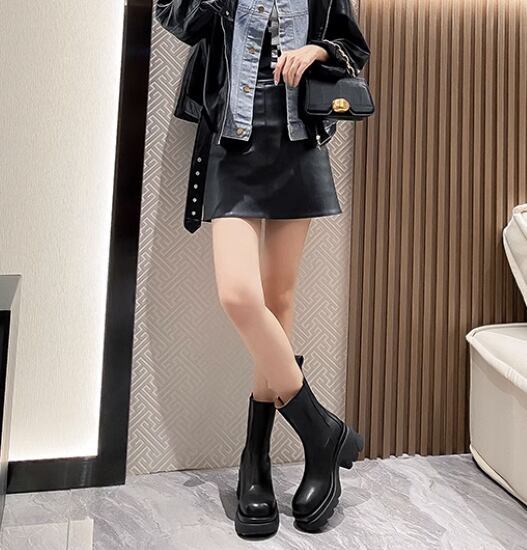 厚底ブーツ レディース ブーツ 靴 シューズ ミドルブーツ サイドゴアブーツ 牛革 レザー ボリューム シンプル 無地 太ヒール チャンキーヒール チェルシーブーツ カジュアル お出かけ おしゃれ