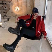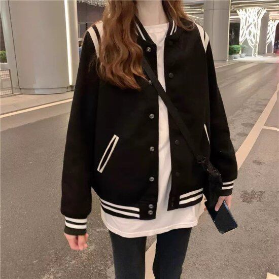 スタジャン レディース ジャケット ブルゾン ライン ジャンバー スポーティー ショート丈 ゆったり オーバーサイズ ユニセックス メンズライク マニッシュ カジュアル アウトドア おしゃれ