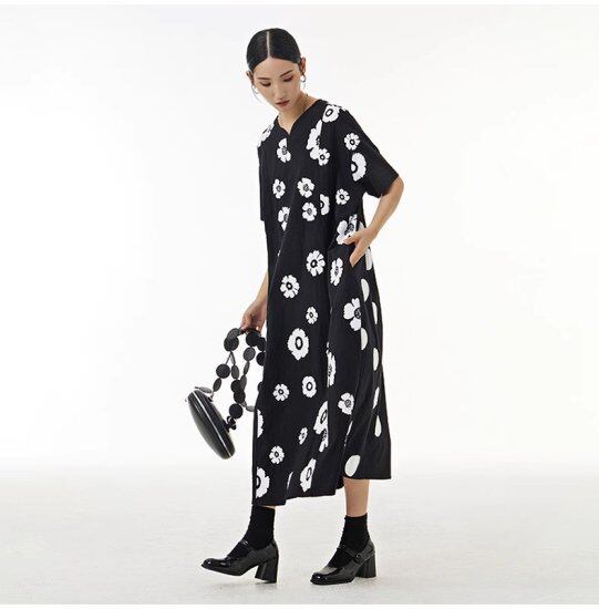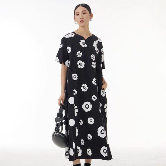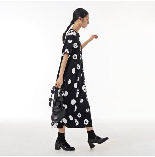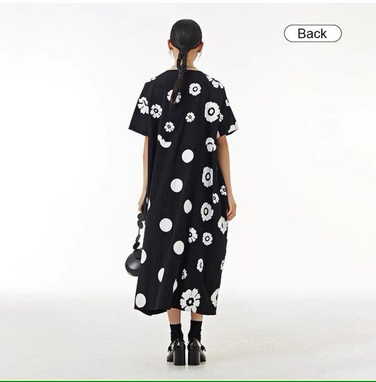 プリントワンピース レディース 花柄 フラワープリント ドット柄 水玉 半袖 五分袖 七分袖 ミモレ丈 ゆったり ロングワンピース コットン かわいい カジュアル 花柄ワンピース おしゃれ 個性的