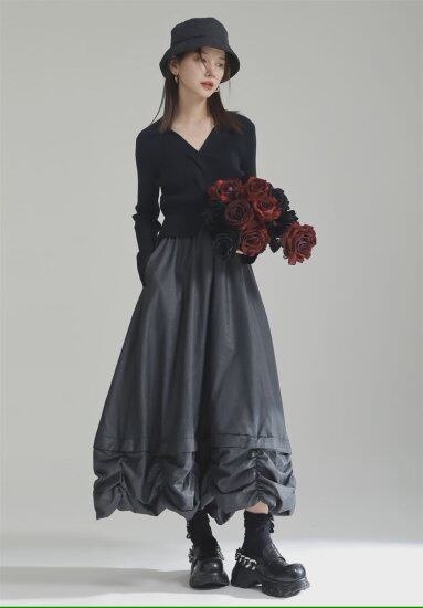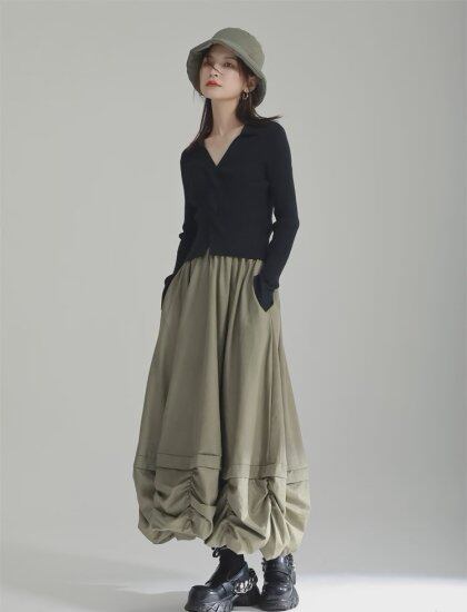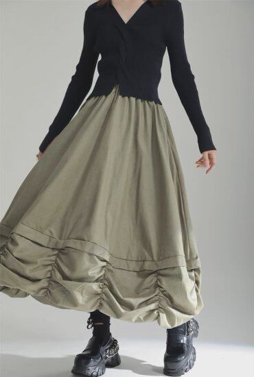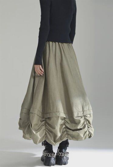 ロングスカート レディース バルーン 個性的 ドロスト ボリュームスカート ギャザースカート 無地 Aライン コクーン ウエストゴム かわいい エレガント カジュアル パーティー おでかけ おしゃれ