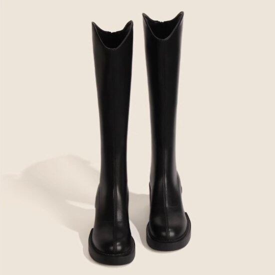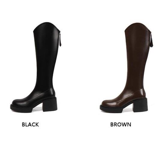 ロングブーツ レディース 厚底ブーツ ウェスタンブーツ ラウンドトゥ 太ヒール ボリューム レザー風 ハイヒール 6cmヒール バックファスナー きれいめ カジュアル おでかけ 靴 おしゃれ