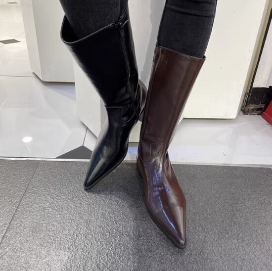 シャープなポインテッドトゥのつま先が印象的なブーツ。