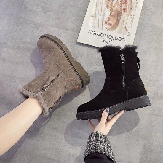 ショートブーツ レディース ムートンブーツ レザーブーツ スエード ラウンドトゥ フラット サイドファスナー 4.5cmヒール ショート丈 ヌバック 裏ボア あたたか 防寒 カジュアル 靴 おしゃれ