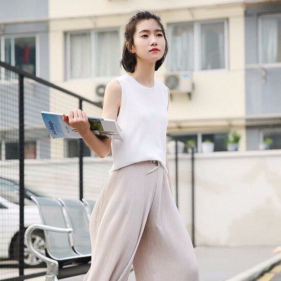 ニット トップス リブニット ショートスタイル ノースリーブ トップス レディース ブラック ホワイト カーキ スリム ノースリーブ カットソー ラウンドネック トップス かわいい タンクトップ