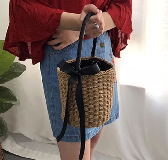 かごバッグ レディース バッグ 鞄 かばん ハンドバッグ カゴバッグ バスケット ナチュラル ワンハンドル りぼん リボン カジュアル お出かけ おしゃれ 夏 ストローバッグ ファッション シンプル