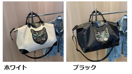 大きめのネコモチーフがアクセントのボストンバッグ。