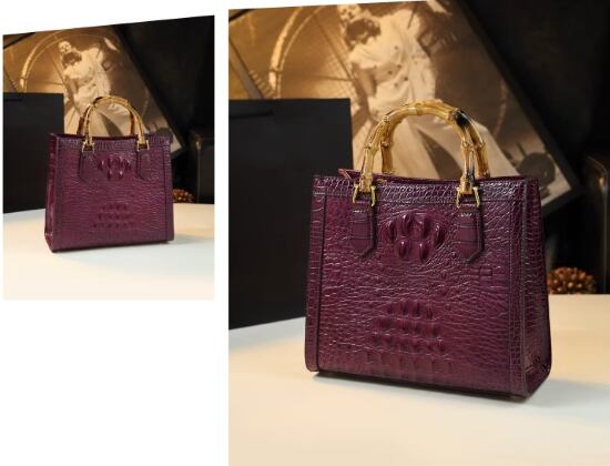 ハンドバッグ レディース バッグ 鞄 かばん スクエアバッグ 上品 クロコダイル模様 アニマル柄 バンブーハンドル 牛革 レザー ショルダーバッグ 肩掛けバッグ 斜め掛けバッグ 2WAY 女性 バッグ