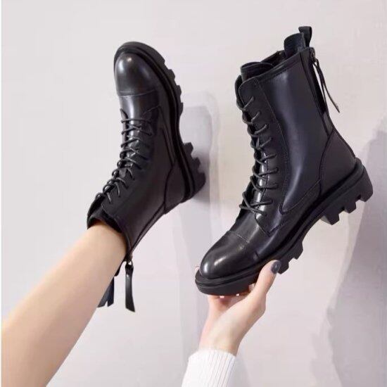 ショートブーツ レディース レースアップ 編み上げブーツ ラウンドトゥ 厚底 ローヒール 4cmヒール レザー マニッシュ メンズライク シンプル 黒 バックファスナー カジュアル おしゃれ